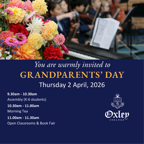 Registrations will open at the start of Term 2, with a link provided in the first Oxley Update. Please note that places are limited and will be allocated on a first come, first served basis.