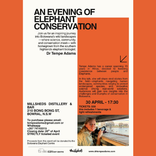 Join Dr Tempe Adams (Old Oxleyan, 2006) for a fascinating insight into the co-existence between people and elephants.