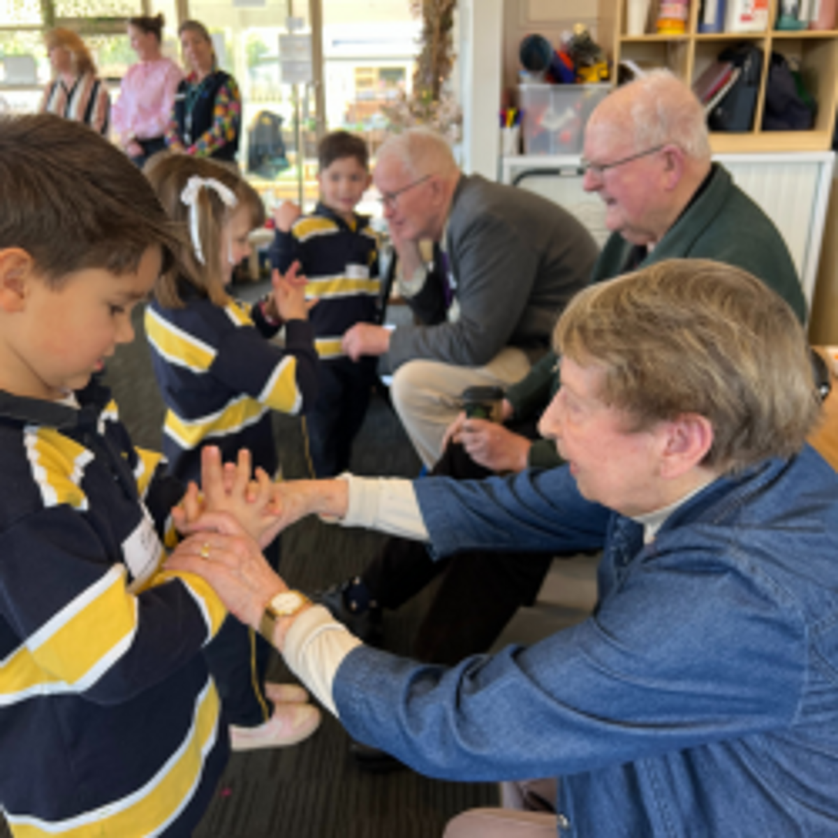 Pre-K deeply values our intergenerational program, Pals & Pioneers. This week we welcomed residents from Anthem Care for their very first visit. The program’s goal is to build meaningful connections with people in our community through weekly interactive activities. These shared experiences foster respect, empathy, and social awareness, while also enriching the children’s emotional development. Working alongside aged care residents helps our Pre-K children build communication skills, patience, and an appreciation for different life stories, while the residents enjoy the joy and energy of young children — creating a truly rewarding exchange for both generations.
