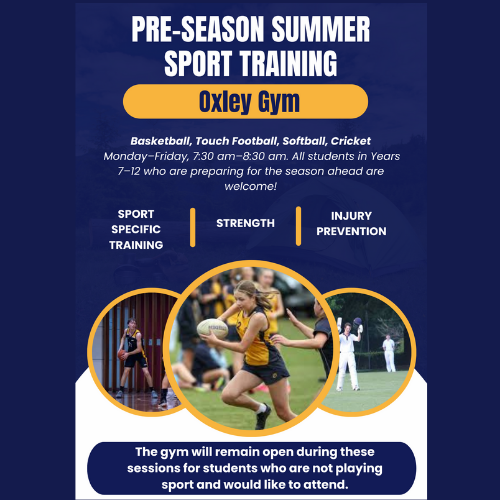 Summer Sport Update, Final Winter Training & Games, and updated times for Year 6 Gym Sessions.
