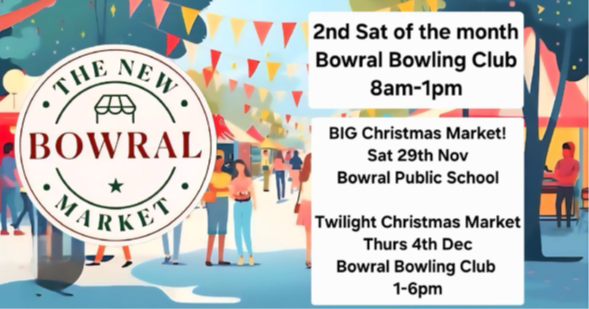 Thank you for your ongoing support and for helping us share the exciting news about the New Bowral Market at the Bowling Club, and the return of the much-loved Bowral Public School Markets — starting with a special Christmas event on Saturday, 29th November 2025, from 9am to 2pm.